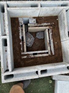 雨で土砂が流入して穴が塞がらないようにコンクリートレンガで穴を補強。